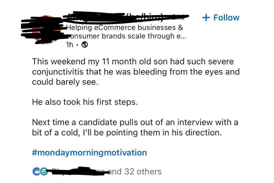 Or this act of courageous vulnerability, which was so egregious that even the usual LinkedIn brigade felt compelled to admit that taking a photo of yourself crying while laying off your employees was not a very boss move.